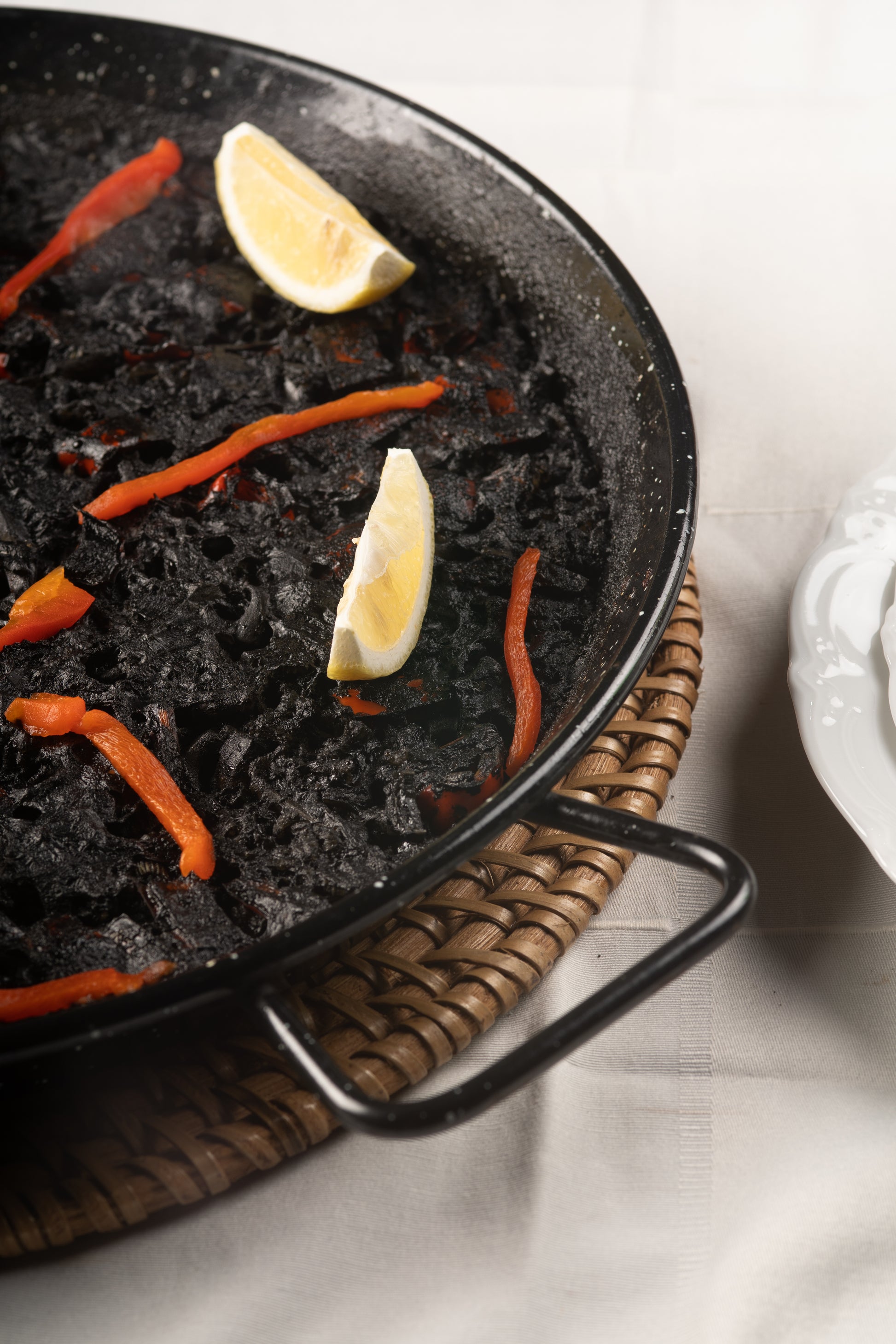 For that extra flavor, try our Fidueà Negra. Enjoy the same goodness of the Fideuà with squid ink. Fideuà is known as "Pasta Paella". Regular size good for 8 - 12 people / Large size good for 18 - 24 people.
